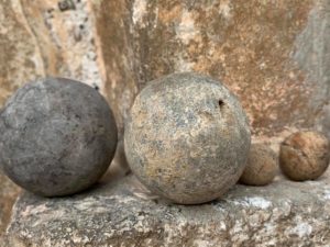 - Old cannonballs and musketballs found in the garden