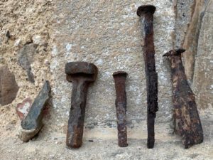 - Old nails and tools found in the garden