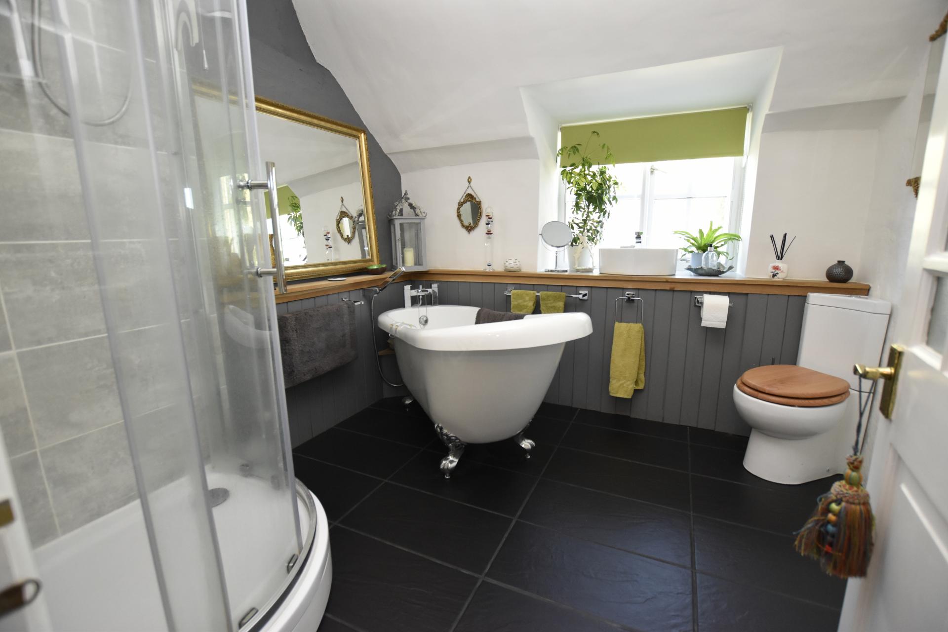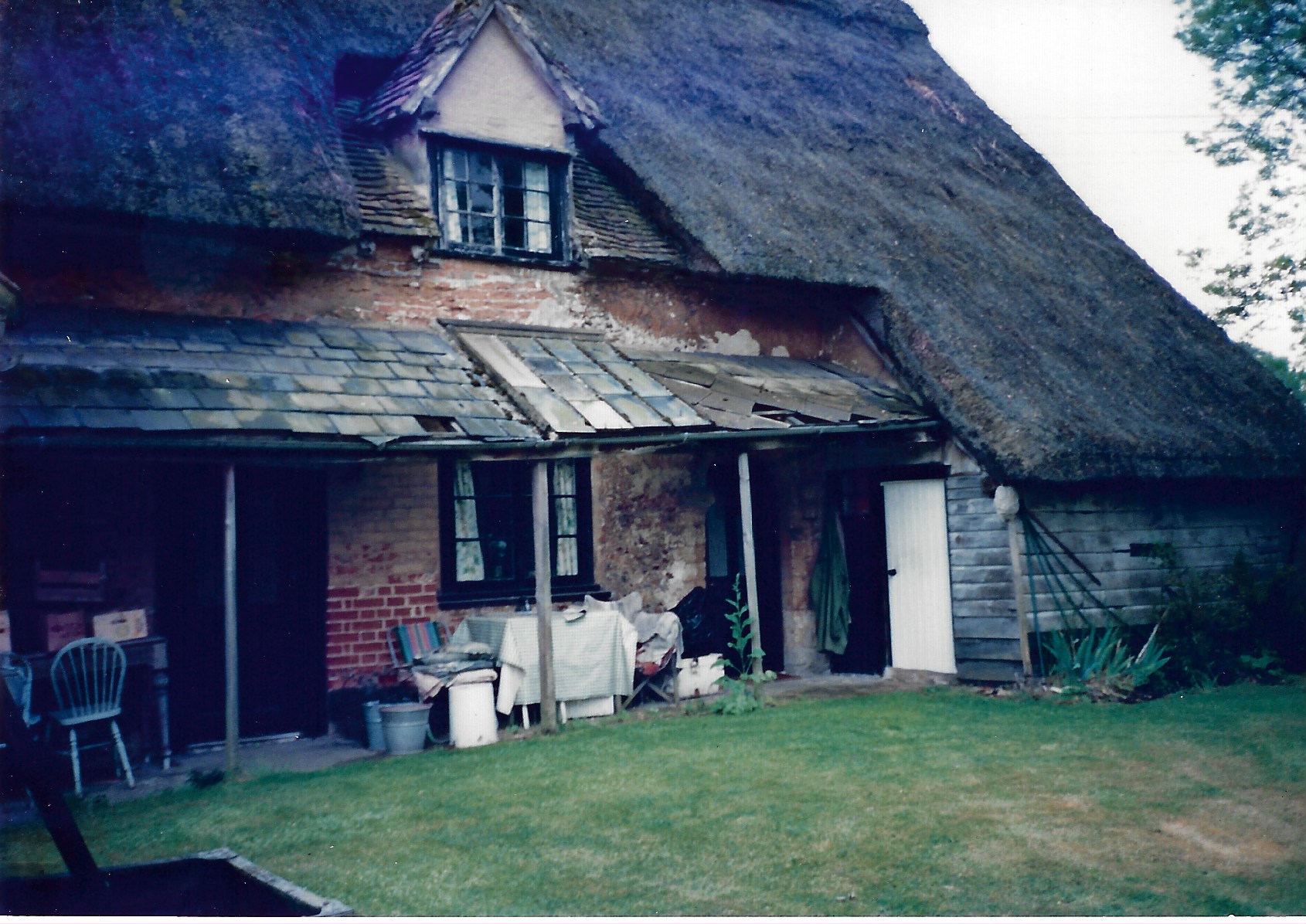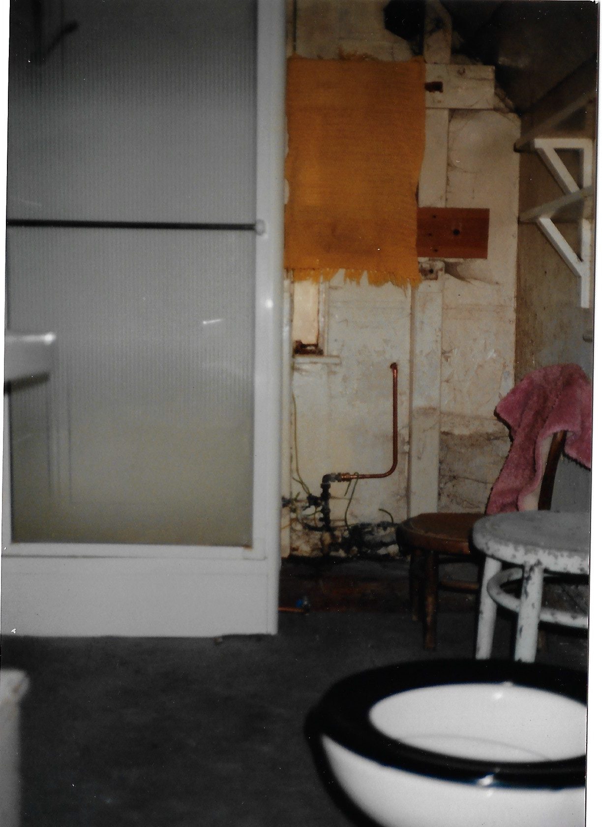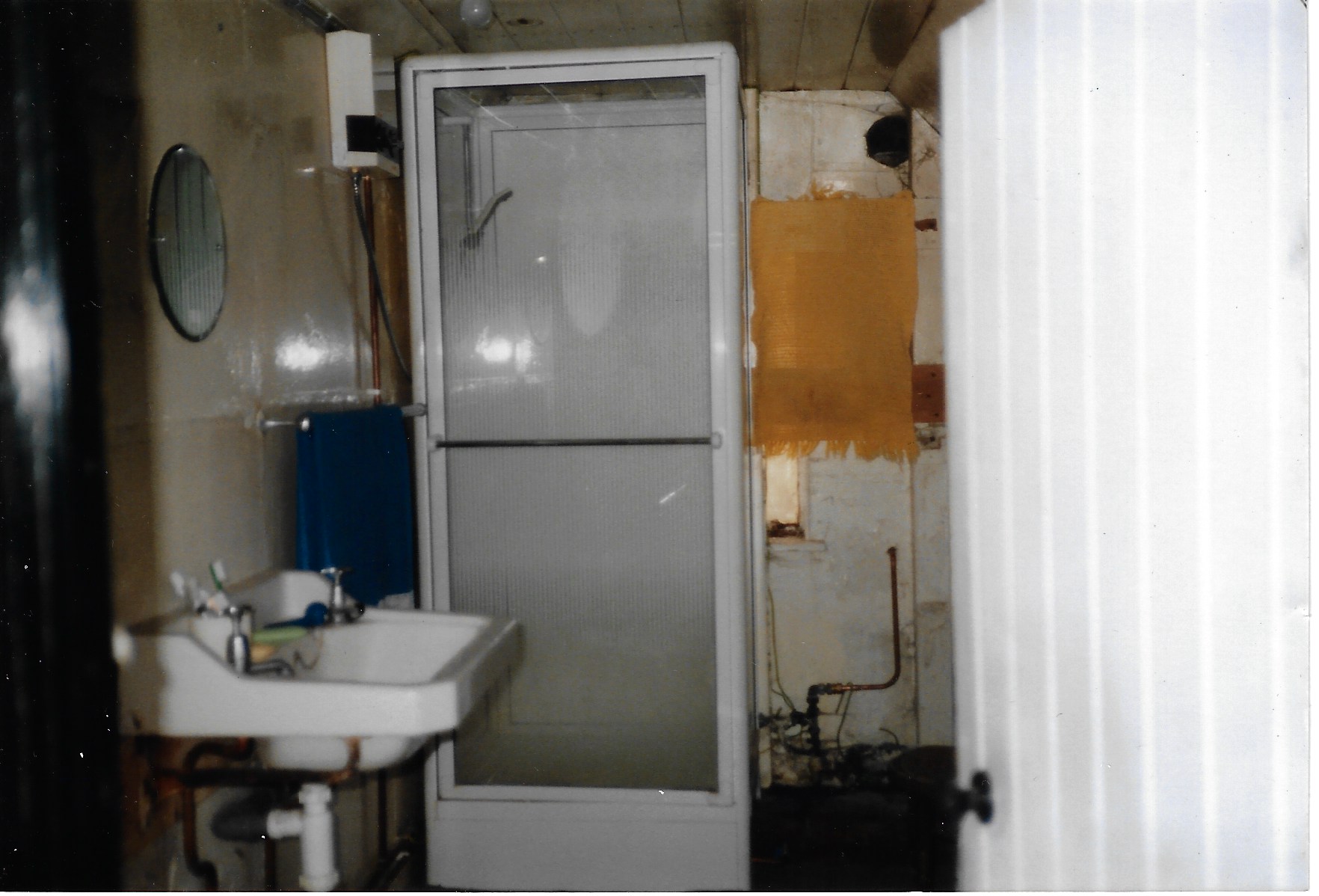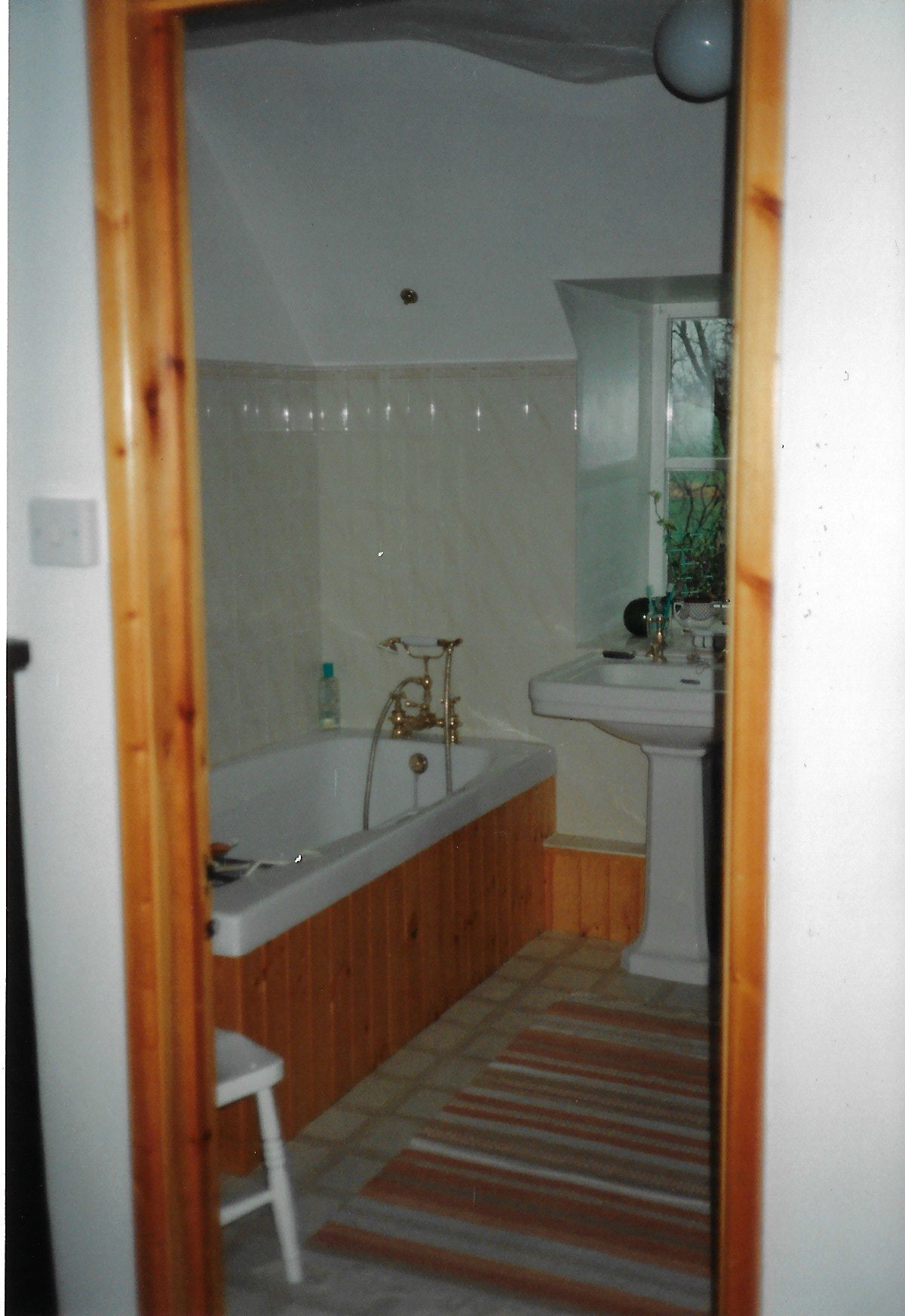 In 1990, the only bathroom in the property was downstairs, in the single-storey extension on the North-West corner of the property. This was demolished (under the roof) and rebuilt, and now houses a utility room and downstairs lavatory.