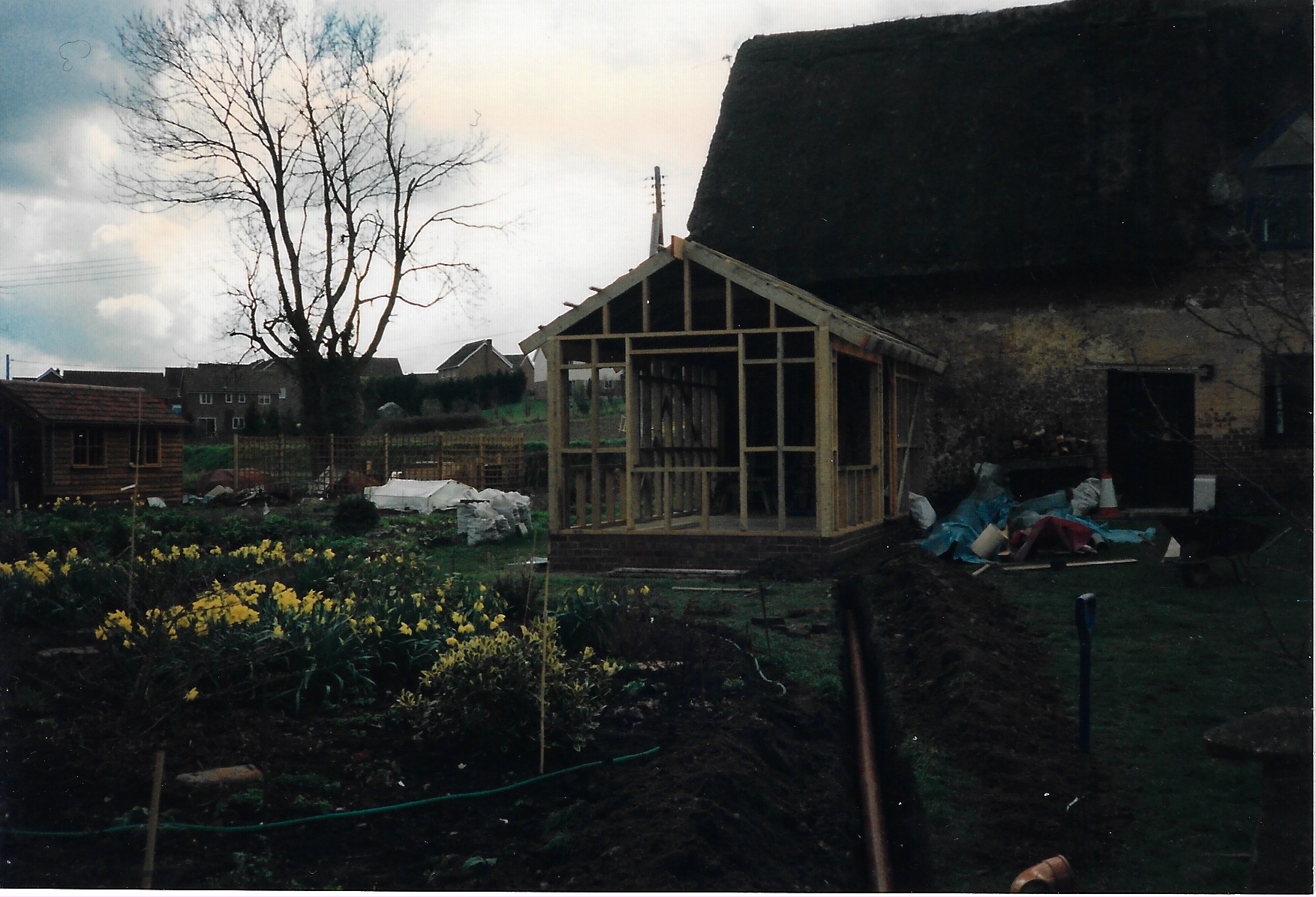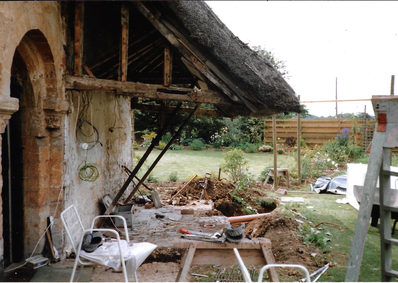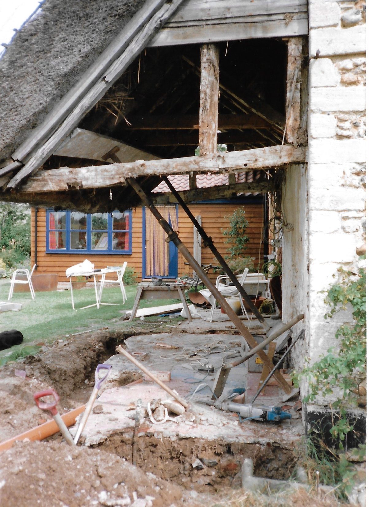 The annexe was rebuilt in 1990. We were lucky to receive many photos of the works carried out at the time, handed down through two sets of owners. There is evidence from The Topographer (a periodical on England’s antiquities and historic buildings) in 1790 that sheds were first erected on the North side of Old Chapel where this annexe sits shortly before that date.