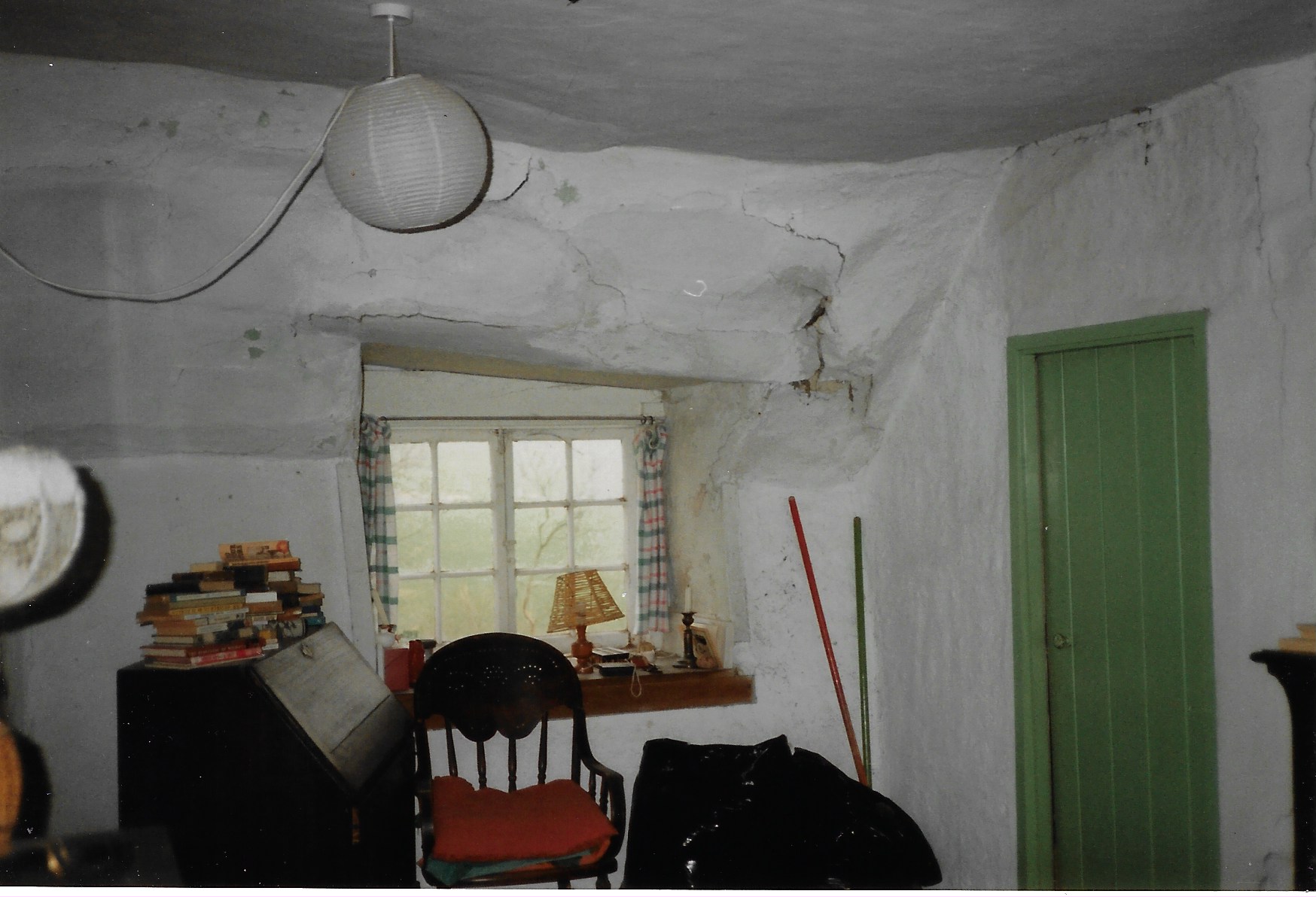 The dormer window on the North side (rear) of the building originally opened onto a landing separating the two bedrooms. In 1990, this was partitioned to create an upstairs bathroom. During the work, some of the original footings of the frame to the thatched roof, one of the most notable historical features of the Old Chapel, were exposed.